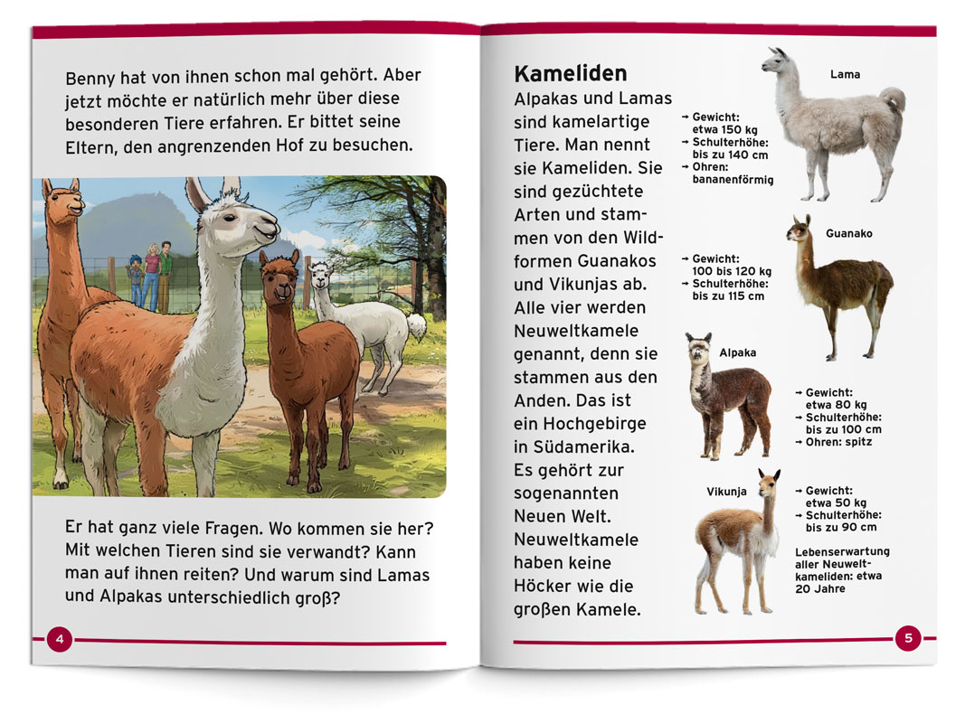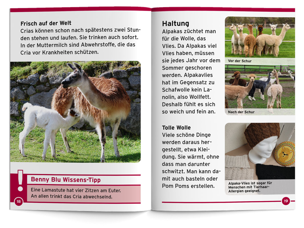 Benny Blu nimmt dich mit in die Welt der Lamas und Alpakas. Was sind Neuweltkamele? Wo leben sie? Wie hält man Lamas und Alpakas? Warum spucken sie? Was macht ihre Wolle so besonders? Und wer ist das Cria? Mit spannenden Wissens-Tipps, Benny Blu Lama-Alpaka-Quiz und Fußvergleich.