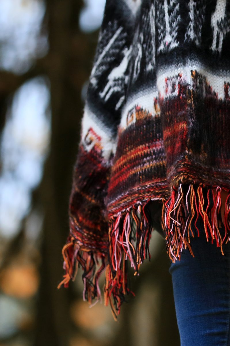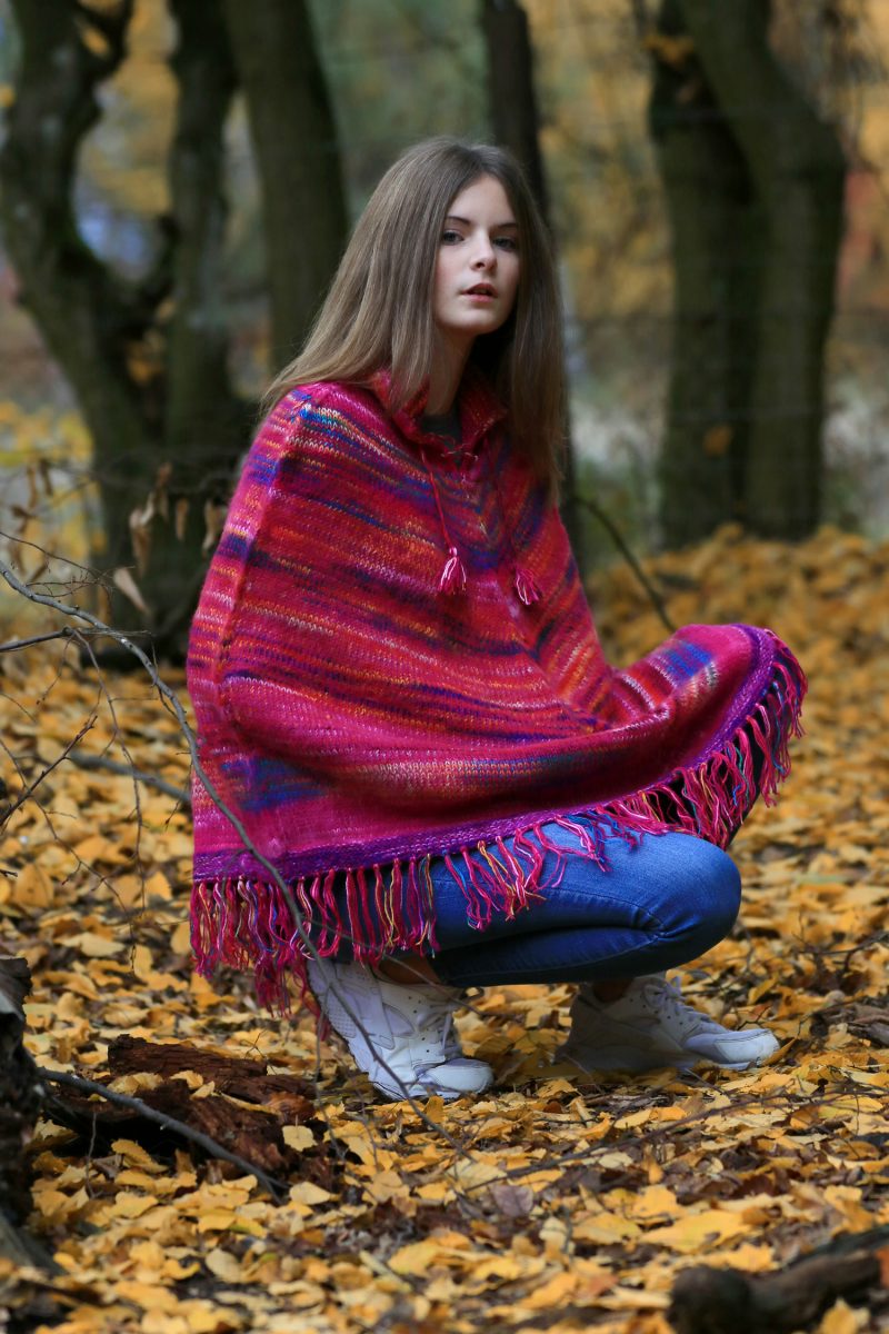 Der klassische Poncho mit Fransen, sehr flauschig und angenehm zu tragen.