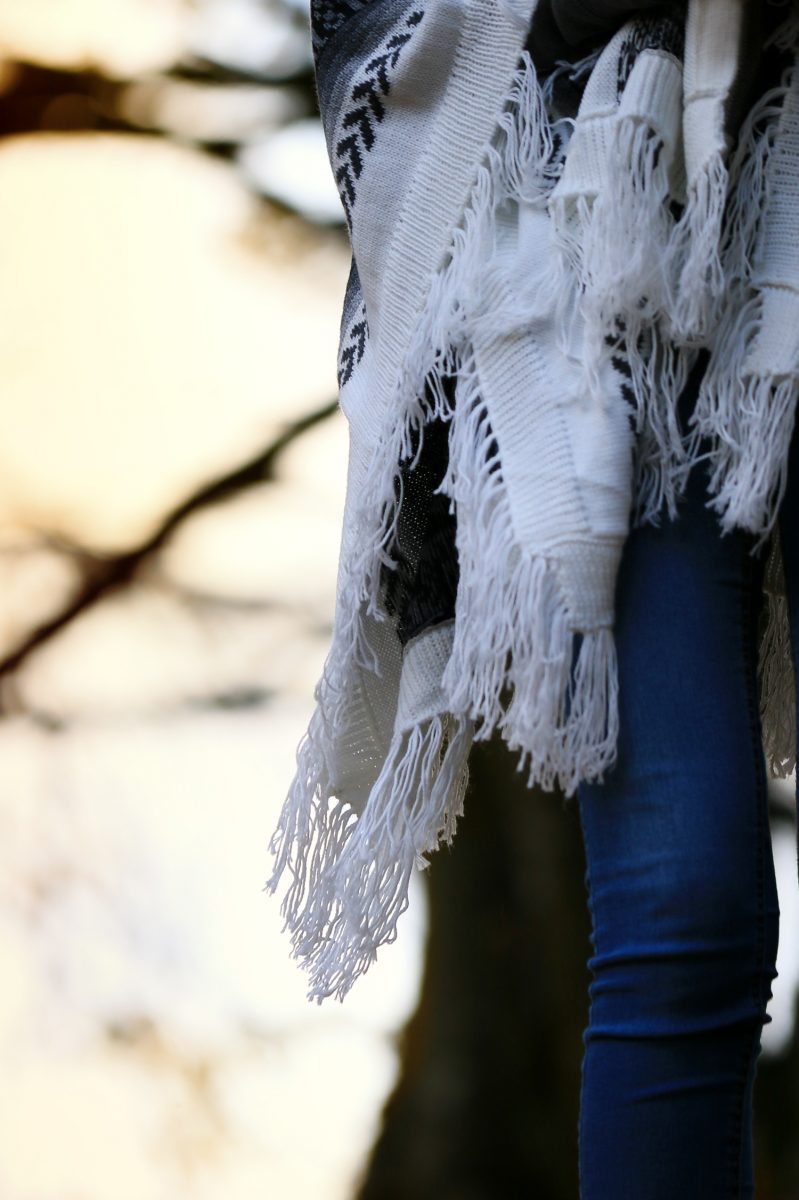 Das Accessoire kann in unterschiedlichen Varianten getragen werden – egal ob als Ponchoüberwurf oder als XXL-Schal um den Hals.