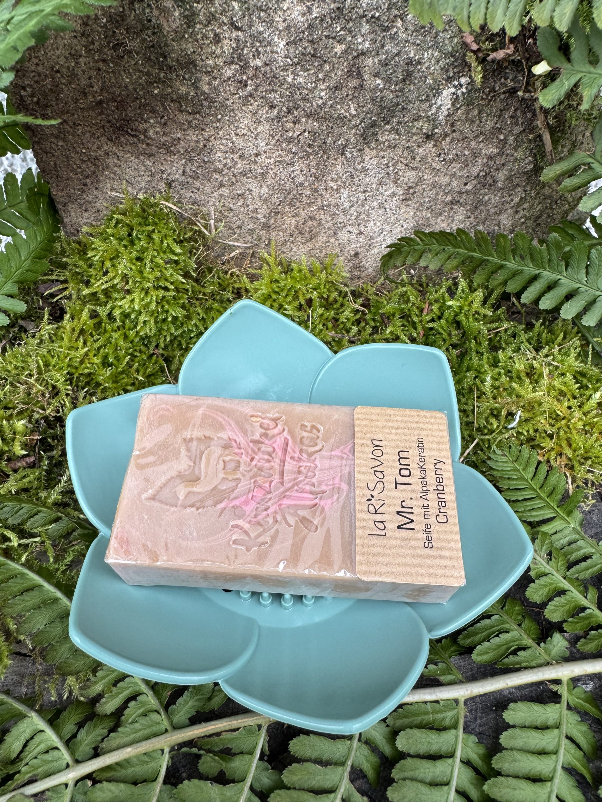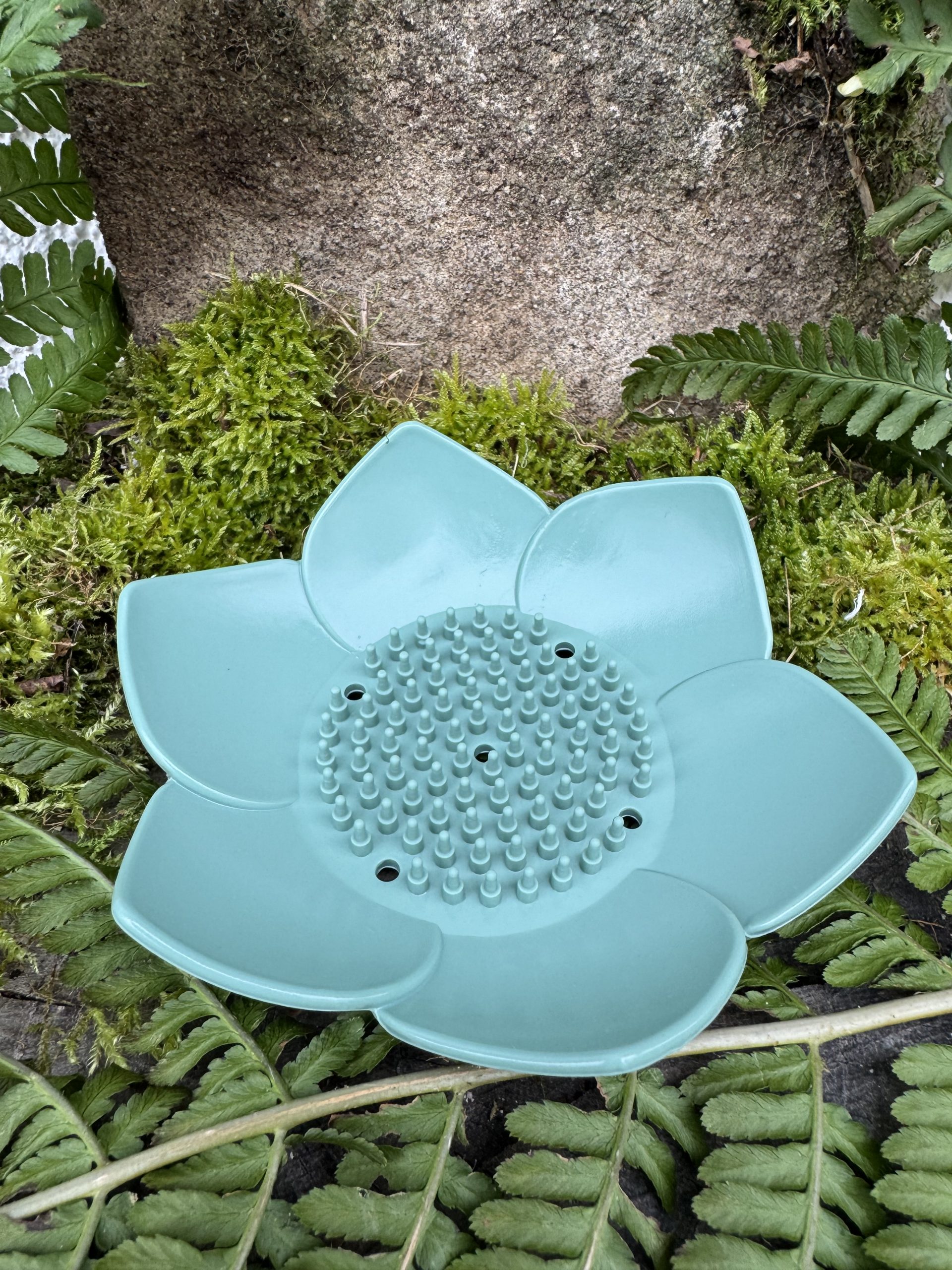 Seifenhalter in Blumenform, mit Löchern zum Ablaufen des Wassers, passend für unsere Alpaka-Seifen